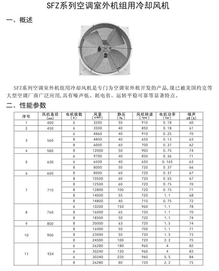 十、SFZ 系列空調(diào)室外機(jī)組冷卻風(fēng)機(jī)