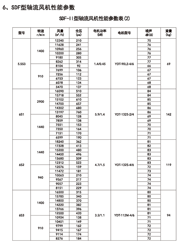 五、SDF 系列加壓軸流風(fēng)機(jī)